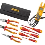 Fluke’s T6-1000 Electrical Tester with integrated FieldSense™ technology lets you quickly and easily take measurements by sliding the open fork over a conductor to see the voltage level without the need for test leads.* The T6 comes with the insulated hand tools starter kit, the most often used screwdrivers, pliers and cutters. Three sizes of slot screwdrivers. #1 and #2 Phillips screwdrivers. Long nose pliers, heavy duty diagonal cutters and heavy duty lineman combination pliers. All forged from hardened, German chromium-molybdenum-vanadium (CMV) steel. All certified to 1000 volts AC and 1500V DC. All with a limited lifetime warranty.