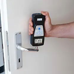 The force measuring device is a handy, digital measuring device for measuring tensile and compressive forces. The force measuring device offers a sampling rate of 500 Hz and various measurement options such as real-time measurement (RT), maximum value measurement (PEAK), configurable average value acquisition (Average) and automatic measurement storage of up to 100 measurements.