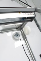 Rangka aluminium dengan panel terbuat dari kaca akrilik, panel dasar terbuat dari polyethylene. Panel depan dilengkapi dengan dua port sarung tangan dan satu pasang sarung tangan ukuran 9,75 yang terbuat dari EPDM tahan UV. Transfer chamber dengan dua pintu di sisi kanan, pintu eksternal dilengkapi dengan kait untuk mencegah pembukaan tidak sengaja. Nampan memanjang ke ruang kerja saat pintu internal dibuka untuk memudahkan pengambilan produk yang dimasukkan. Lampu ultraviolet terintegrasi dengan pemantauan umur di bagian atas untuk disinfeksi udara dan permukaan di ruang kerja, lampu dapat diganti. Lampu ultraviolet ini adalah sumber radiasi bebas ozon yang tidak memancarkan radiasi di bawah 220 nm. Koneksi daya listrik 230 V / 50 Hz diperlukan.