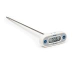 HI145 thermometers were developed for HACCP programs that require high standards of performance with simplicity of use. The durable T-shaped handle fits comfortably in hand and is ideal for applications where applied force is necessary for insertion, such as with incoming meat inspection and semi-frozen foods. The LCD positioned on top of the meter allows for easy reading in cooking applications.