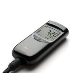 The HI991001 is a compact, waterproof, portable pH/temperature meter that is supplied complete including a rugged carrying case and a unique titanium body pH electrode that has a built-in temperature sensor. The meter features a large, dual level LCD display for easy viewing of the pH, temperature, and status indicators. The operation of the meter is simplified to two buttons. The HI991001 has an exceptional long battery life of 1400 hours of continuous use.