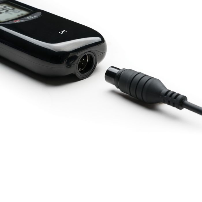 The HI991001 is supplied with the pre-amplified titanium body pH/temperature electrode. The titanium body is resistant to many aggressive chemicals including those used in plating and chemical manufacturing. The titanium body acts as a matching pin that, together with the built-in amplifier, will help reduce the effects of electrical noise on the high impedance pH measurement. Examples of sources of electrical noise include rectifiers, motors and ballasts.