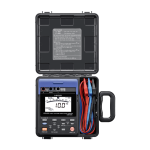 Hioki insulation resistance testers or megohmmeters feature all-in-one designs including built-in rugged cases and test lead storage compartments. The IR3455 is a 5-range, 250 V to 5000 V digital insulation resistance tester offering up to 10 TΩ of insulated resistance testing. High performance features include bargraph, built-in memory, leak current and voltage testing, and DAR and PI calculation capabilities to help shorten work time associated with field insulation testing.