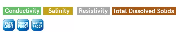 • Four (4) TDS calibration curves for wide range of applications: EN27888, Linear, 442, NaCl