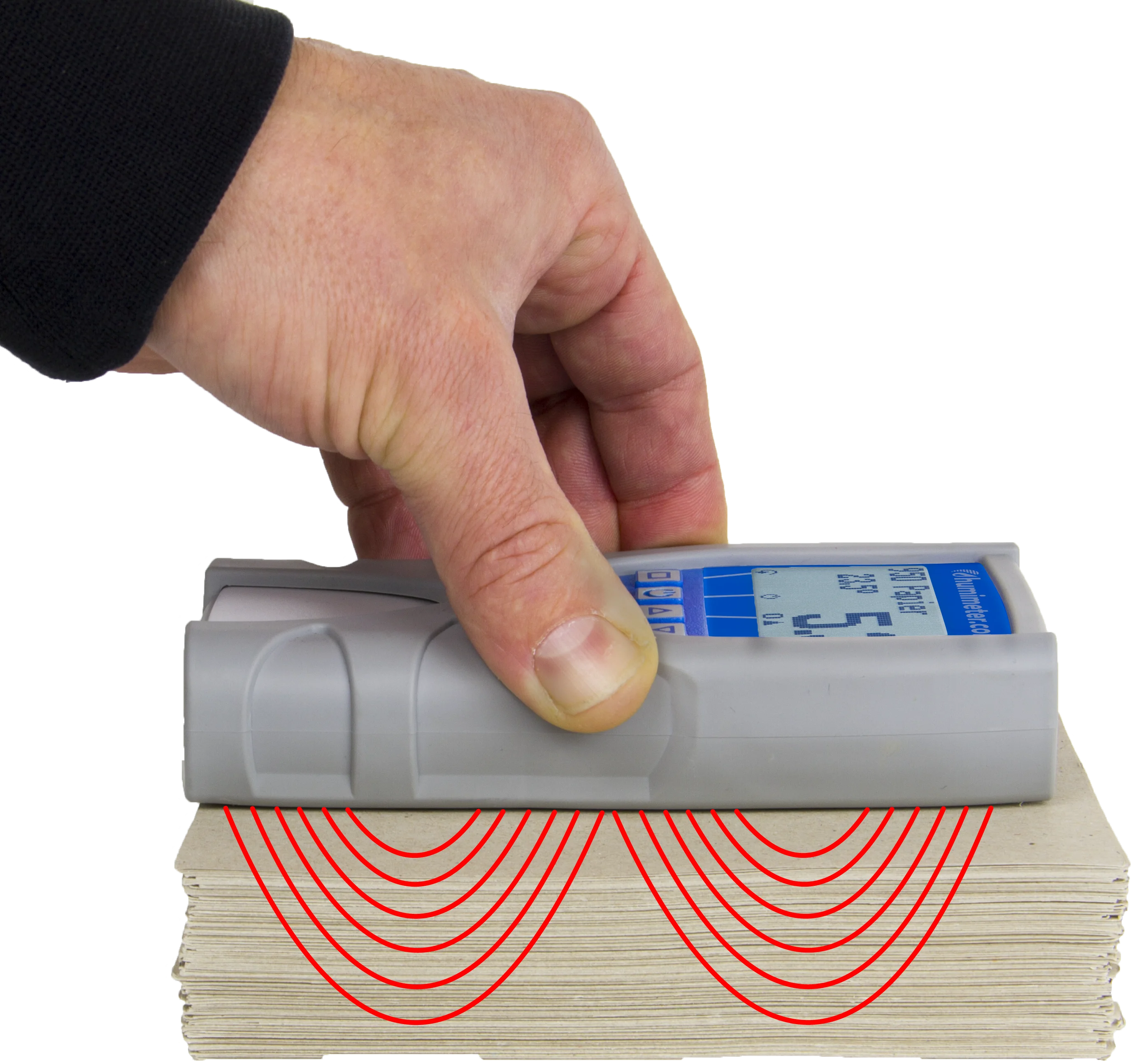 The measuring device determines the absolute water content of the paper and solid board in the stack.