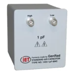 The GenRad 1403 Standard Air Capacitors are stable, three-terminal standards in decimal values from 0.001 pF to 1000 pF. For measurement at 100 pF and below, a three terminal connection increases the accuracy by eliminating the uncertainty in the measurement introduced by the capacitances between the capacitor terminals and ground.