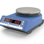 Innovatively designed digital magnetic stirrer with heating. Bushing according to DIN 12878 for connecting an electronic contact thermometer, such as the ETS-D5. Highly accurate temperature control is possible with sensor placed directly in the medium. A high heat output of 600 watts and stainless steel compound hot plate ensures rapid heating. Adjustable safety temperature from 100 to 360 °C.