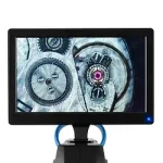 The incident light ring on the inspection camera consists of 21 LEDs. The inspection camera also has another lighting unit in the base for transmitted-light microscopy. In addition, the entire lighting can be set separately in the inspection camera in 5 stages. Also helpful is the user interface, in which the digital brightness in the inspection camera can be set manually as well as automatically. Because of the two lighting methods and the extensive setting options of the lighting, almost every object to be analyzed can be optimally illuminated with the inspection camera.