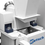 A front door gives direct access to the crushing chamber at a perfect height for ergonomic and easy cleaning. The feed hopper with splash-back protection can be removed quickly and easily. The Jaw Crusher BB 250 has a connection for dust extraction and is protected against mechanical overload. A scale indicates the wear of the breaking jaws, informing the user when it is time for an exchange.