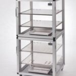 Desiccator ini memiliki rangka aluminium dengan panel yang terbuat dari kaca akrilik, dua kompartemen dengan dua pintu, dilengkapi dengan empat rak dari stainless steel, dua nampan, dan dua higrometer. Dilengkapi dengan empat roda (dua di antaranya dilengkapi rem), dan dapat digunakan dengan hingga 8 rak per kompartemen.