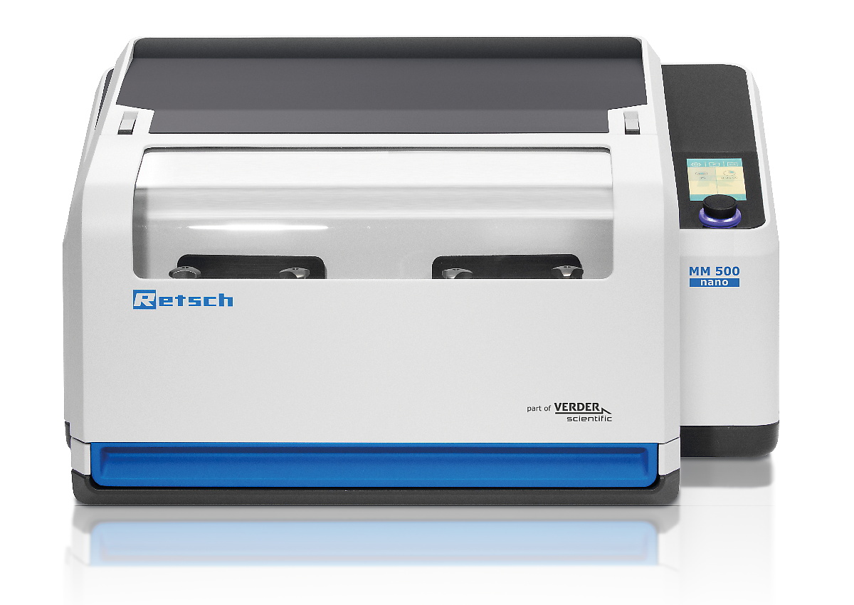 Hence, the MM 500 nano is a unique mixer mill in the market to provide a real alternative to grinding in a planetary ball mill – with more comfortable handling and less warming effects.