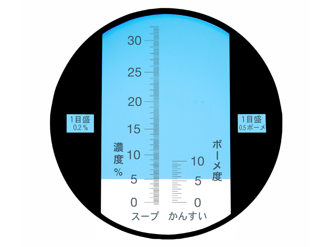 Suitable for ramen soup of 0.0 to 32.0% concentration and brine water of 0.0 to 10.0 Baumé degrees.