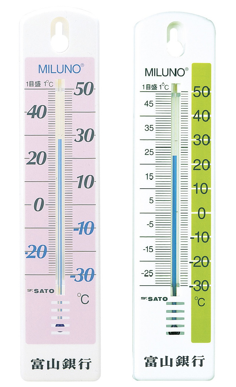 A classic style thermometer but plastic is used for a base instead of wood. Name printing is available. Supplied with a white box.