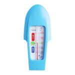 A boat-shaped thermometer suitable for a babies' toy in a bathtub. We have blue and pink ones.