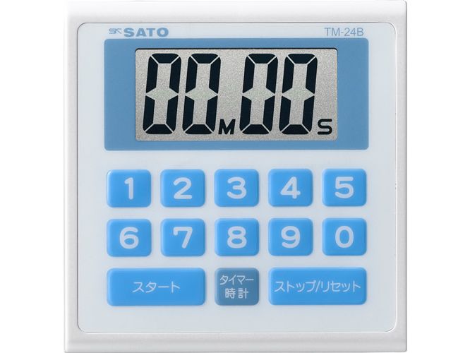 TM-24 series is a drip-proof timer as thin as 11 mm which you can handle with wet hands, with a clock function. Two body colors are selectable and this model is of blue.