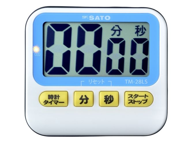 TM-28LS is a timer with a clock and five types of alarm sounds. Three patterns of alarm are selectable: sound, light, and both sound and light.