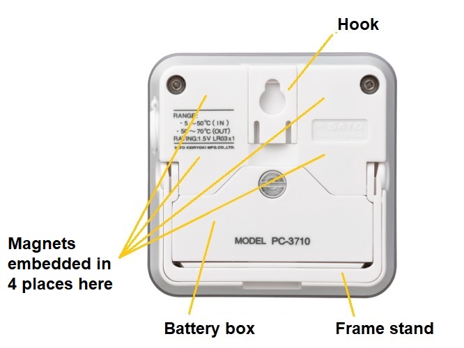 PC-3710 is a digital thermometer to monitor two locations at the same time, with an internal sensor and an external probe.