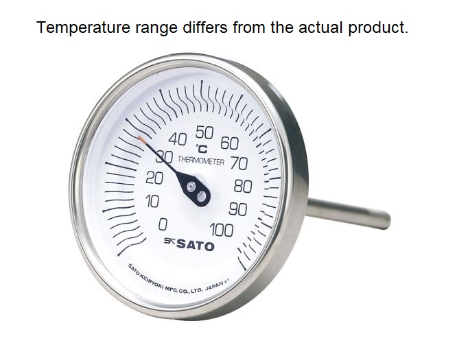BM-T-90S is a bimetallic dial thermometer in a stainless steel case, with its sensing stem extended behind the dial. You can choose your preferred one from 4 temperature ranges and 4 different length of sensing stems. This model is of −30 to 50°C, 200-mm sensing stem.
