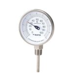 BM-S-90S is a bimetallic dial thermometer in a stainless steel case with a 90-mm dial, with its sensing stem extended below the dial. You can choose your preferred one from 3 temperature ranges and 4 different length of sensing stems. This model is of 0 to 100°C, 50-mm sensing stem.