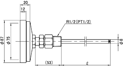 | Dimensions | Dial case/window: 87 mm/75 mm diameter Sensing stem: 8 mm dia. x 150 mm (L) |