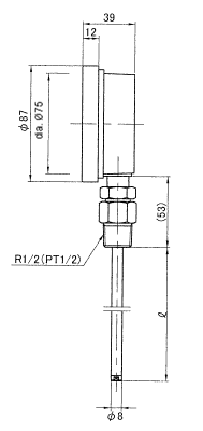 | Materials | Dial case: Polyamide resin Sensing stem, screw: Brass Window: Glass |