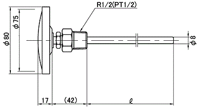 | Dimensions | Dial case/window: 80 mm/75 mm diameter Sensing stem: 8 mm dia. x 150 mm (L) |