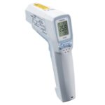 SK-8950 is an infrared thermometer with a wide measuring range from –60°C to 550°C, with IP54 dustproof/waterproof performance to enable handling in wet hands.
