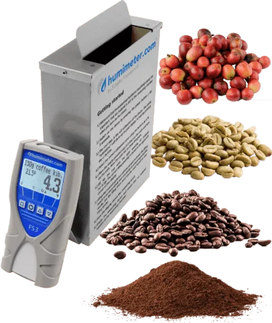 The humimeter FS3 food moisture meter with 300 gram sample weight and sample temperature measurement for producers and traders in the food industry is a powerful professional moisture analyser for the determination of water content of a lot of food, luxury food and grain types. Therefore the humimeter FS3 is also called coffee moisture tester and cocoa moisture meter.