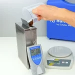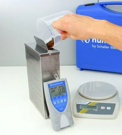To increase the measuring accuracy and reproducibility of the grain special food moisture meter, the measurement is hectolitre compensated by a precise weighing of the sample quantity. For that the grain moisture meter is delivered with a scale and measuring cup, which ensures that the bulk density doesn´t affect the measuring result. The whole grain moisture meter series is calibrated and checked according to the calibratable kiln-drying method EN-ISO 712.