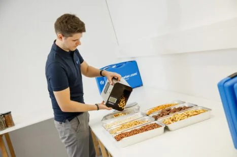 Fill your sample into the large measuring chamber of the food moisture meter and start measuring. The device determines the required measured values ​​in a few seconds. After the measurement process is complete, you can empty your measured food and measure a new sample.