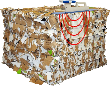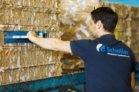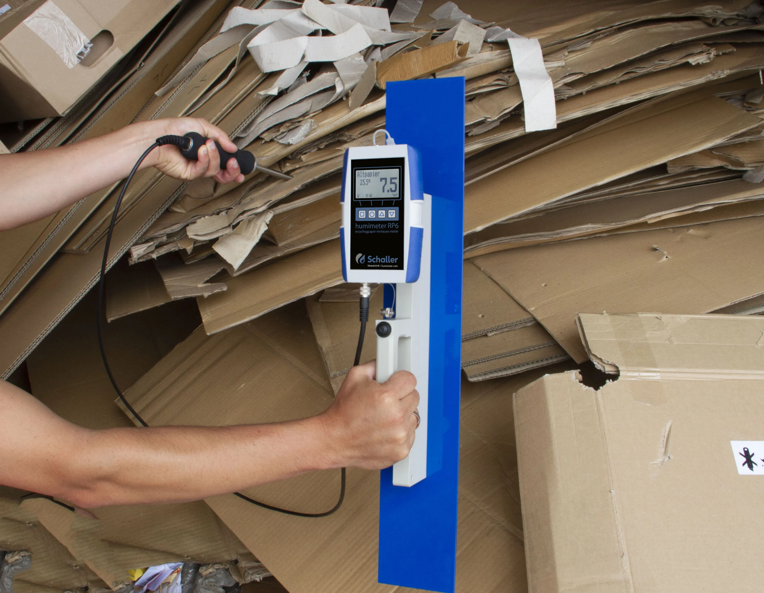 Measuring instrument for checking the water content of waste paper and for detecting small moisture pockets in waste paper bales.
