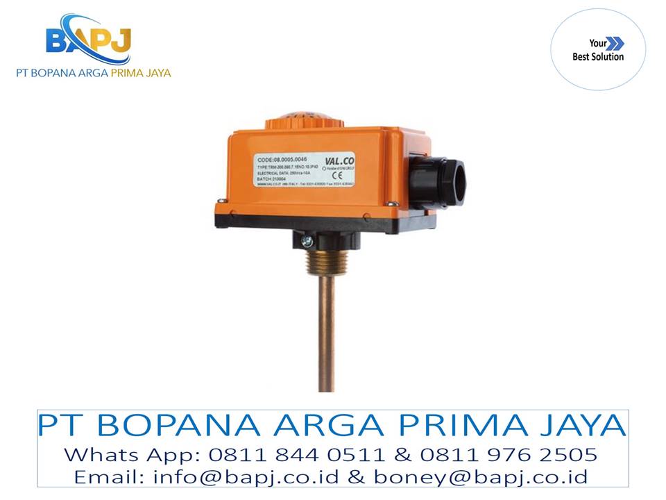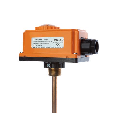 Thermostat disuplai dengan thermowell untuk pemasangan.