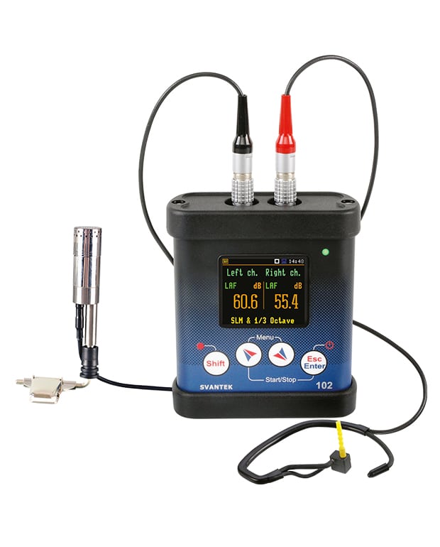 SV 102A+ adalah dosimeter kebisingan Kelas 1 saluran ganda, yang menggabungkan dua fungsionalitas berbeda: pengukuran kebisingan saluran ganda dan kemampuan rentang frekuensi Kelas 1. Fitur saluran ganda memungkinkan penilaian paparan kebisingan secara bersamaan di kedua sisi kepala atau dalam konfigurasi seperti di bawah headset dan di bahu, meningkatkan akurasi data paparan kebisingan di berbagai lingkungan kerja. Kemampuan ini sangat bermanfaat untuk menilai paparan kebisingan asimetris, di mana kebisingan mungkin datang terutama dari satu arah.