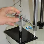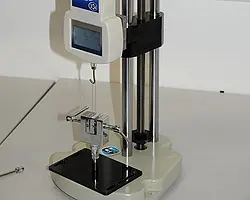 In this way you can always achieve reproducible results of the force measurement with the force test stand. The tensile or compression range in which this force test stand can be used is a maximum of 100 kg. The force test stand is operated using a crank. The force test stand is often used for other purposes for other tests on materials.
